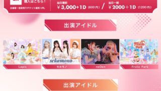 【料金】VIP 4,000円/前方S 3,000円/一般A 2,000円/女性J 無料(各+1D)
