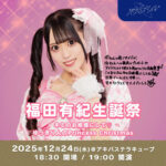 2025年12月24日 / 最終更新日時 : 2025年11月30日 ASC_HP001 福田有紀生誕祭~君のお姫様にして♡ゆっきりんのPrincess Christmas~ 【時間】OPEN 18:30/START 19:00 【料金】カメラチケット 7,500円/前方チケット 5,000円/一般チケット 1,500円/当日+500円(各+1D)