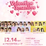 2026年2月14日 / 最終更新日時 : 2026年1月31日 ASC_HP001 『マイノリティアラート×AISTEAL×MELYUME Valentine 3manlive』 【時間】OPEN 16:30/START 17:00 【料金】前売優先3,000円/前売一般1,000円/当日各+1,000円(各別途+1D)