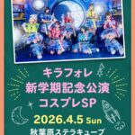 2026年4月5日 / 最終更新日時 : 2026年4月3日 ASC_HP001 キラフォレ新学期記念公演コスプレSP 【時間】OPEN 20:00/START 20:15 【料金】優先入場 5,000円/前方 3,000円/一般 1,000円/新規無料(各+1D)