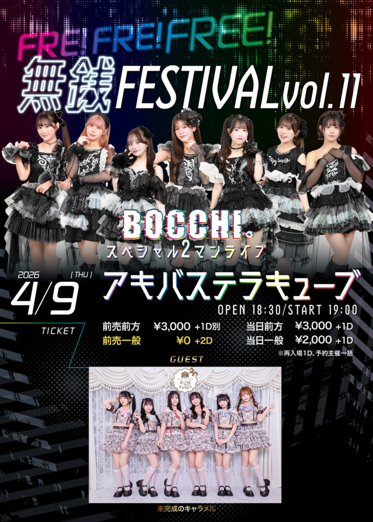 『 FRE! FRE! FREE! 無銭FESTIVAL vol.11』 -BOCCHI。ツアー前Special2マンライブ!-