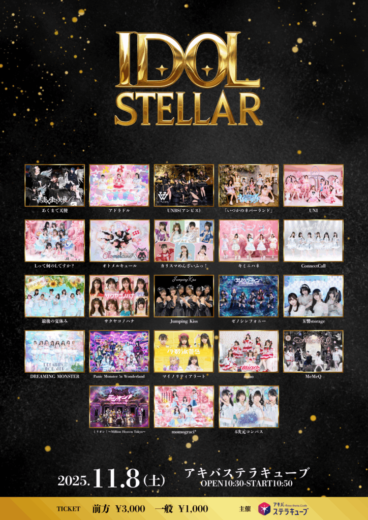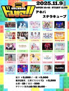 ▪出演者:あくまで天使/アドラドル/UNBS(アンビス)/「いつかのネバーランド」/UNI/Lって何のLですか?/オトメルキュール/カリスマめんざいふっ!/キミニハネ/ConnectCall/最後の夏休み/サクヤコノハナ/Jumping Kiss/ゼノシンフォニー/玉響storage/DREAMING MONSTER/Panic Monster !n Wonderland/マイノリティアラート/miao/MeMeQ/ミリオン!〜Million Heaven Tokyo〜/momograci*/4次元コンパス