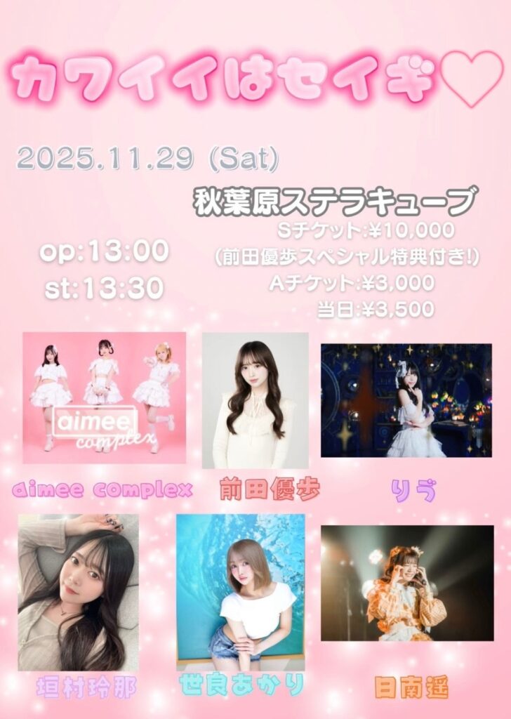 【出演】前田優歩、垣村玲那、世良あかり、りゔ、日南遥、三浦まみ、水瀬るり、aimee complex