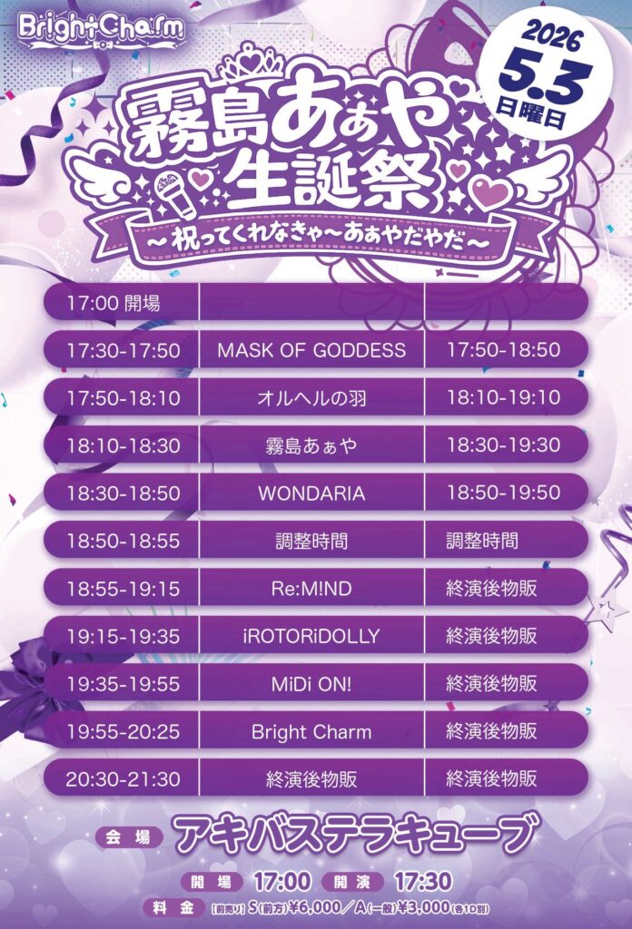 Bright Charm 霧島あぁや生誕祭 〜祝ってくれなきゃあぁやだやだ〜
