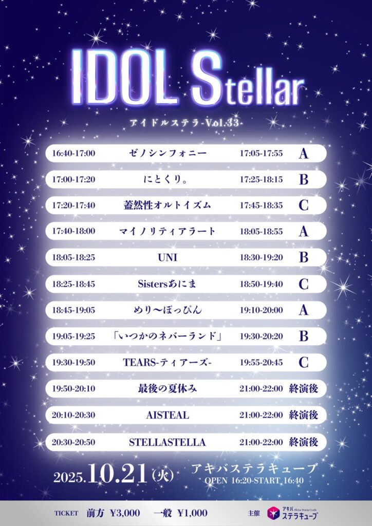▪出演者:AISTEAL/「いつかのネバーランド」/UNI/蓋然性オルトイズム/最後の夏休み/Sistersあにま/STELLASTELLA/ゼノシンフォニー/TEARS-ティアーズ-/にとくり。/マイノリティアラート/めり〜ぽっぴん